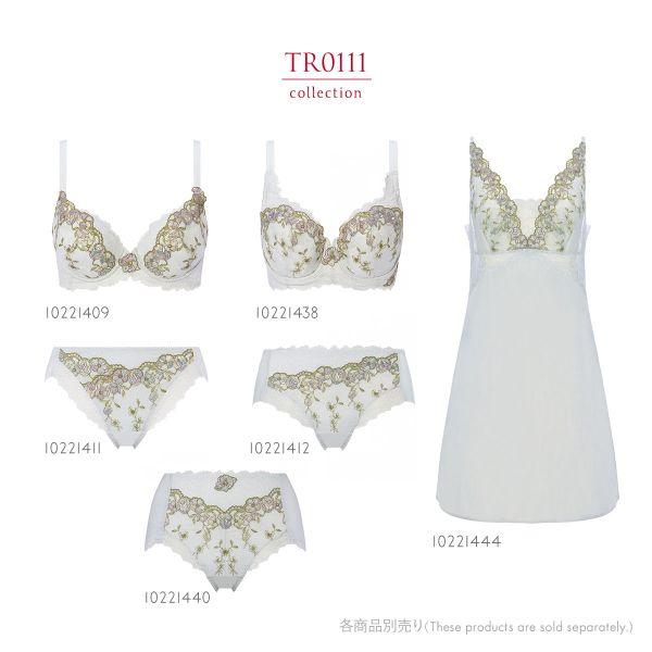 プレミアムデザインTR0111は、眠り姫からインスピレーションを受けたシリーズ。アーチにそってバラが咲き誇るようなデザインが華やか。アップリケに施したラメ糸が夜明けの露のように光り輝きます。