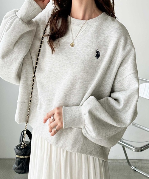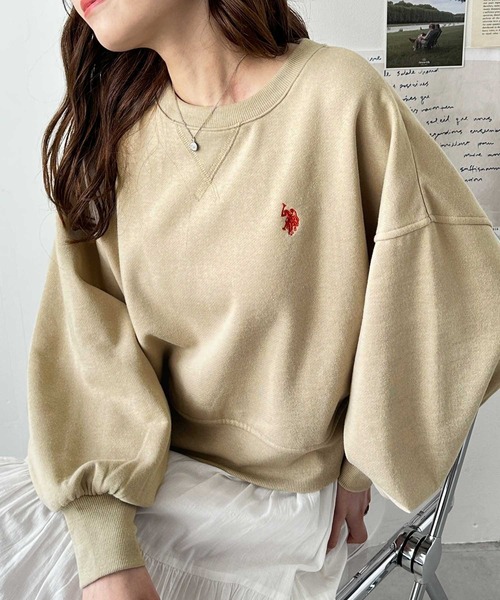 U.S. POLO ASSN. トレーナー スウェット GeeRA別注「U.S. ASSN.」秋にぴったり。袖ボリュームショート裏起毛スウェット レディース