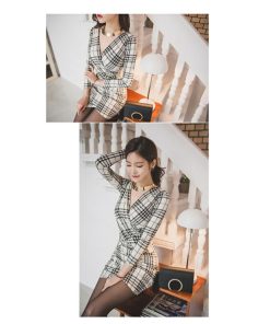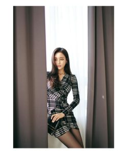Village H&T ワンピース レディース ドレス ギンガムチェック タイト ストレッチ 長袖 韓国風
