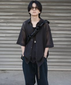 キーワード:シャツ メンズ レギュラーカラー ロング丈 半袖 無地 夏 春