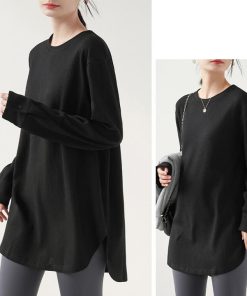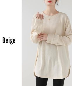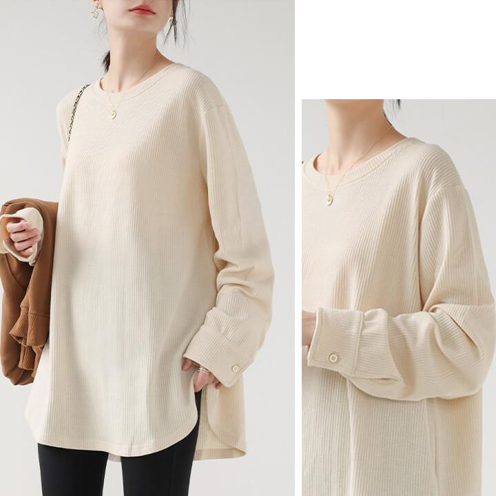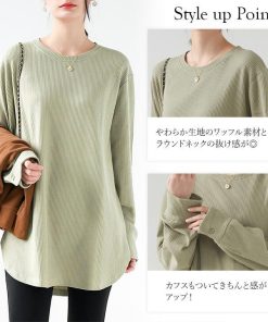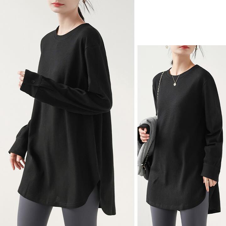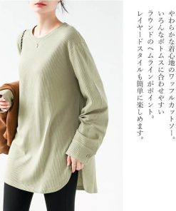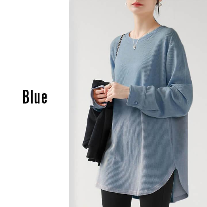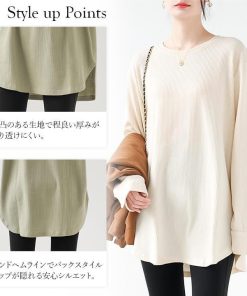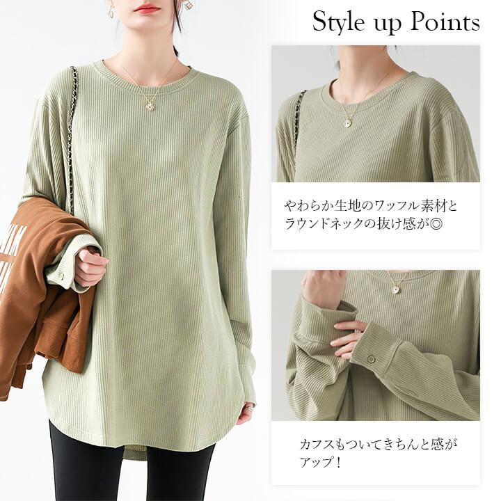 You Color レディース 長袖 ロングTシャツ ワッフル カットソー Tシャツ 凸凹 大きいサイズ 体型カバー 無地 クルーネック カジュアル お尻が隠れる rt3092