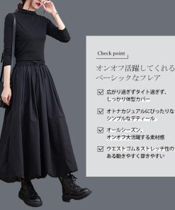 GOLDJAPAN 大きいサイズレディース スカート ロング タック フレア ウエストゴム ギャザー 冬新作 秋服 冬服 春服 夏服 LL 2L 3L 4L 5L F ブラック 黒 ゴールドジャパン