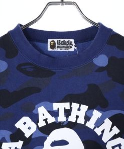 A BATHING APE アベイシングエイプ COLOR CAMO COLLEGE CREWNECK カモ総柄 ロゴプリント クルーネックスウェットトレーナー ブルー 001SWI301015M