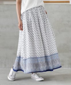 osharewalker フレアスカート ロング レディース ボトムス パネル柄 裏地付き ポケット ウエストゴム コットン100% 薄手 カジュアル きれいめ 春 夏「メール便不可」「20」