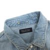 ◇ ◎ ●未使用● MONO-MART ボタン 胸ポケット ストライプ柄 薄手 シンプル 長袖 シャツ サイズM ブルー系 メンズ E
