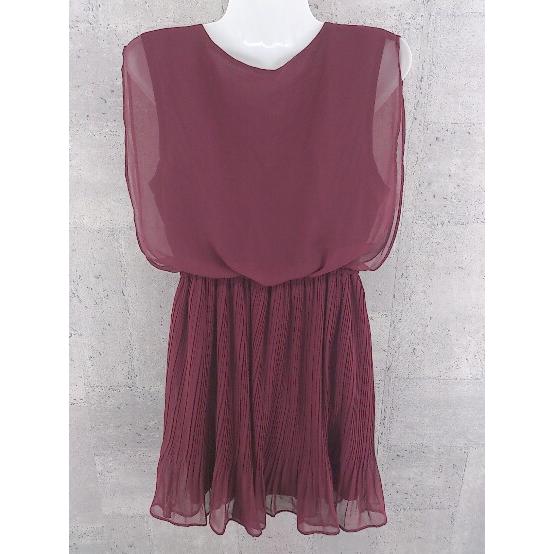 ◇ archives アルシーヴ シフォン 切替 プリーツ ノースリーブ ミニ ワンピース ボルドー系 レディース