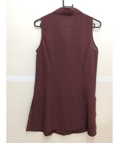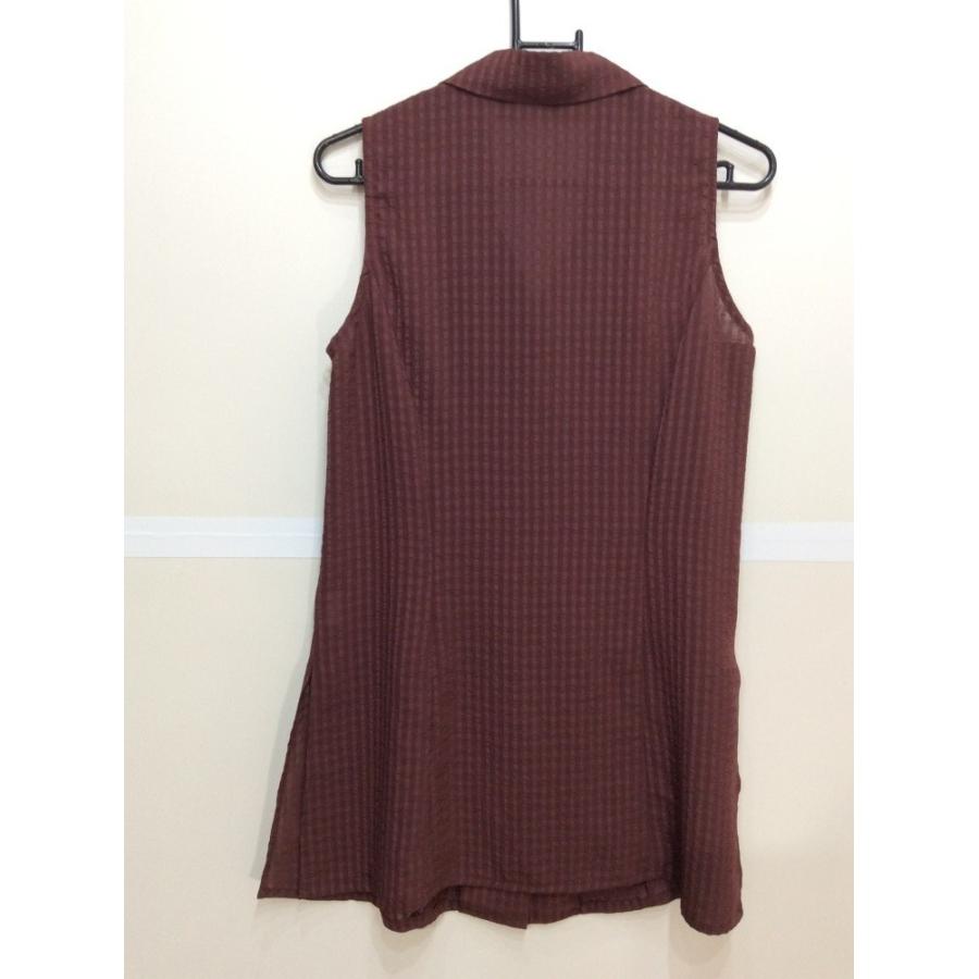 えんじ地格子柄ノースリブラウス ポリエステル