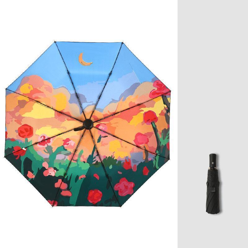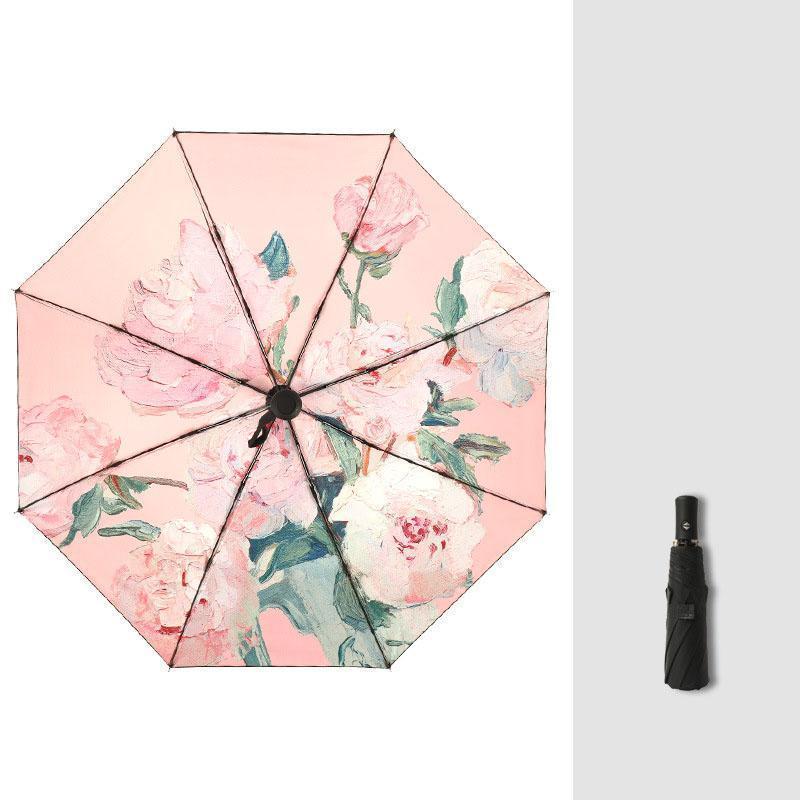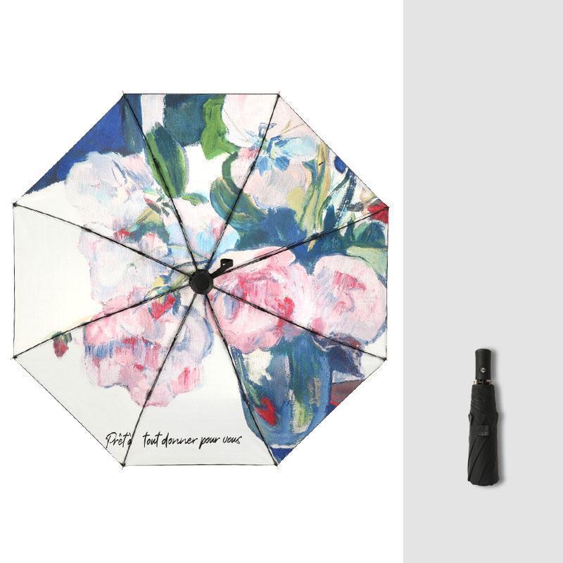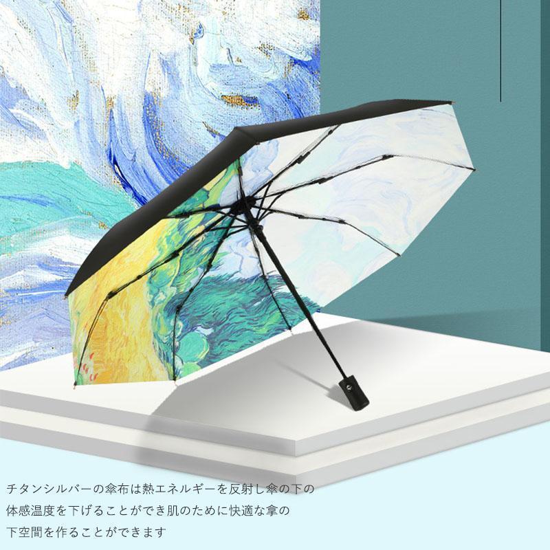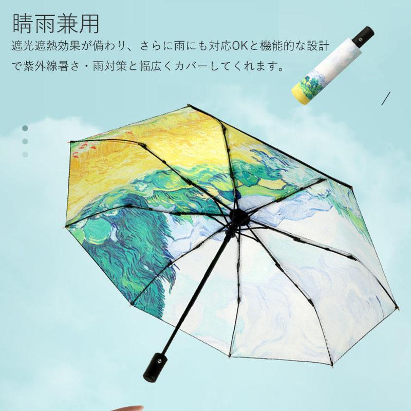 【大特価】日傘 折りたたみ 完全遮光 自動開閉 油絵柄 花柄 軽量 晴雨兼用 自動傘 ワンタッチ 8本骨 遮光率100% UVカット UPF50+ 遮熱 遮光