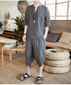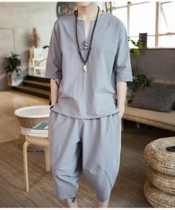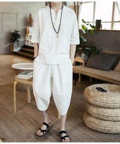 綿麻上下セット セットアップ リネン メンズ ワイドパンツ サルエルパンツ 上下 ルームウェア 半袖 薄手 Tシャツ パンツ 部屋着