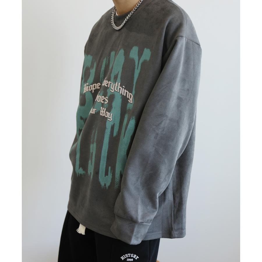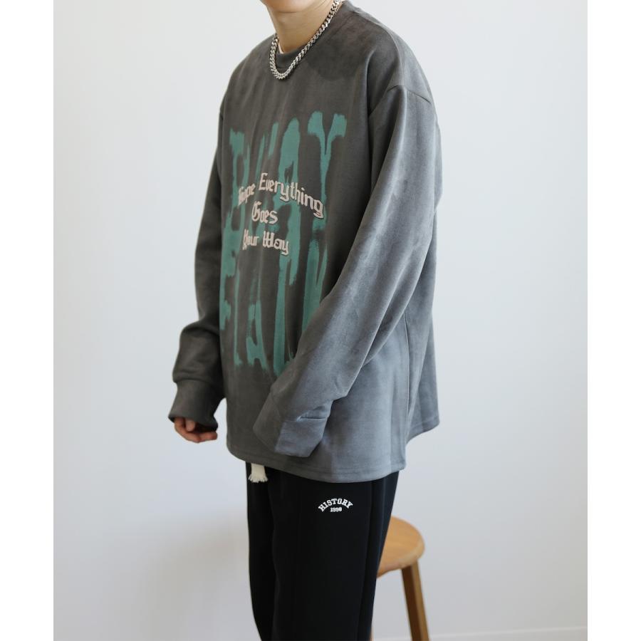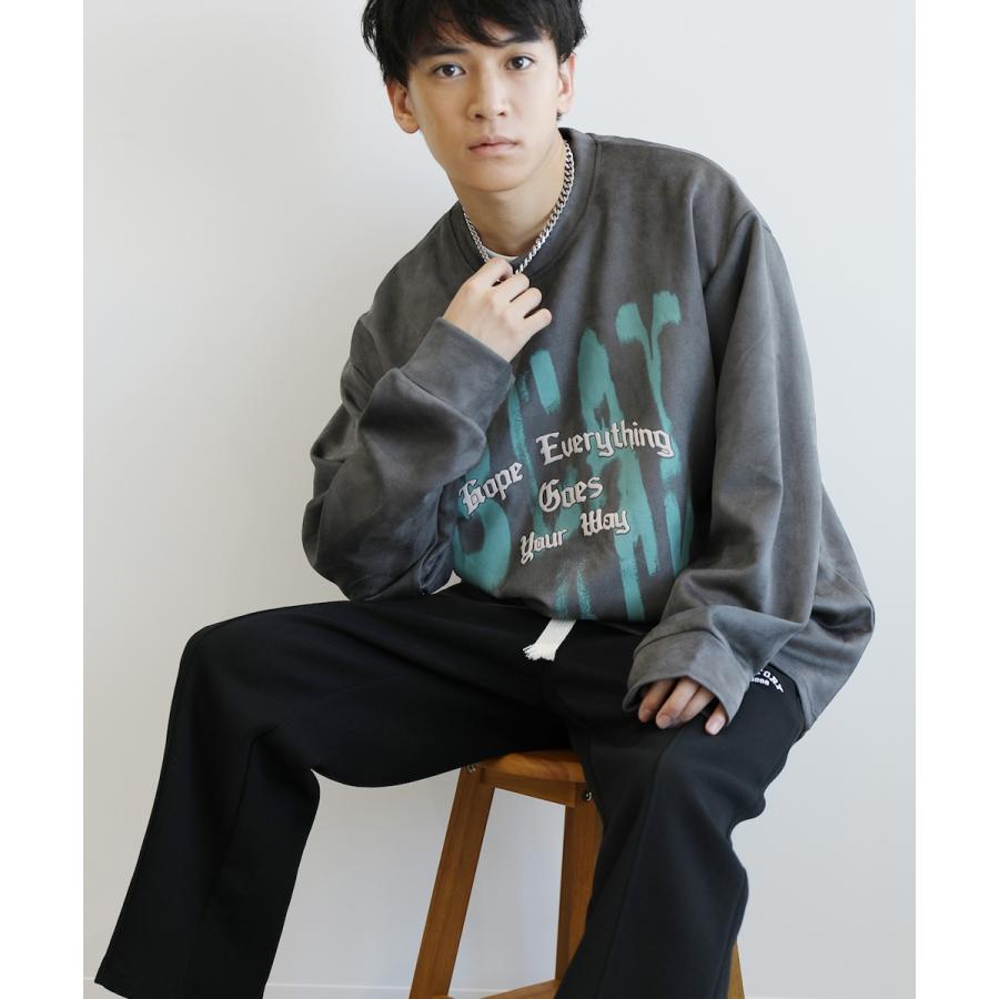 【HOOK】落書き英字プリントスエード調スウェット