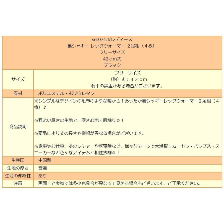 あったか 裏シャギー レッグウォーマー 2足組 (4枚) ブラック フリーサイズ 42cm丈 set0713