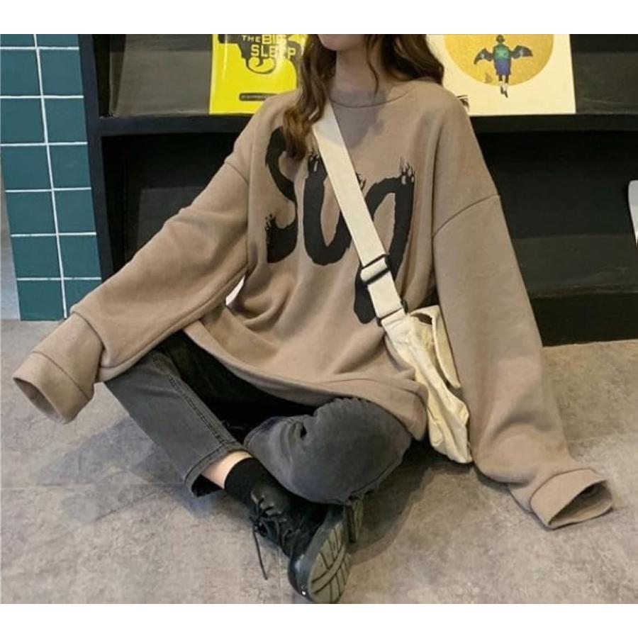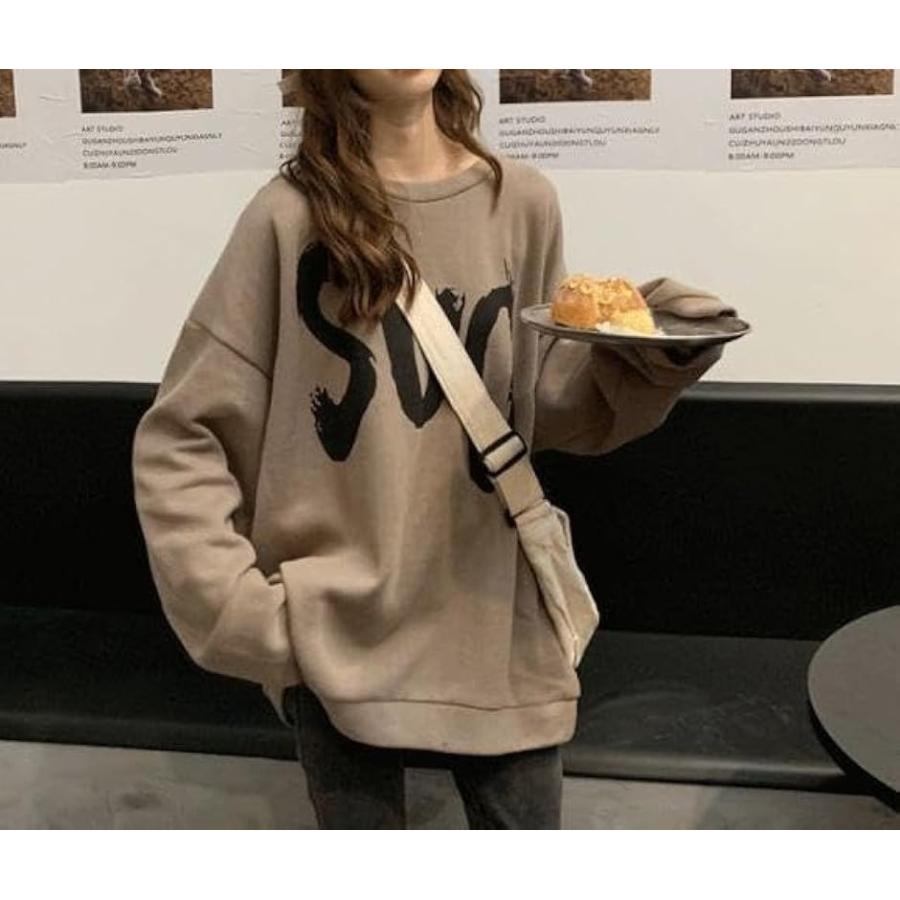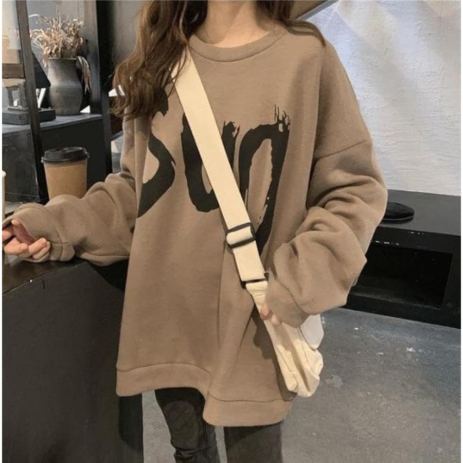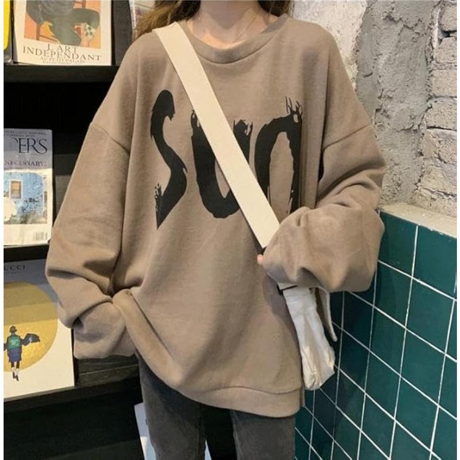 ウスデ カワイイ ゆったりサイズ プルオーバー 長袖 だる着 トレーナー レディース トップス チュニック(キャメルブラウン, L)