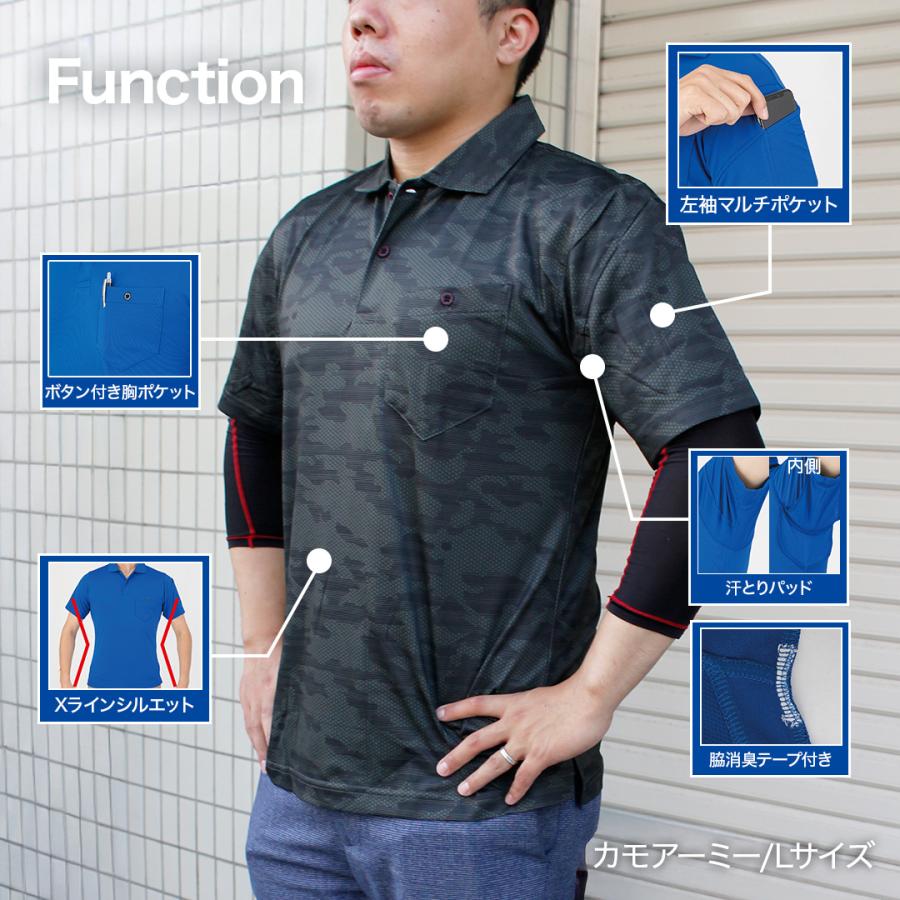 エアー UV+ 半袖 ポロシャツ (カモフラグレー/LL) ユニセックス 男女兼用 冷感 MAXDRY 吸汗速乾 シャツ UVカット