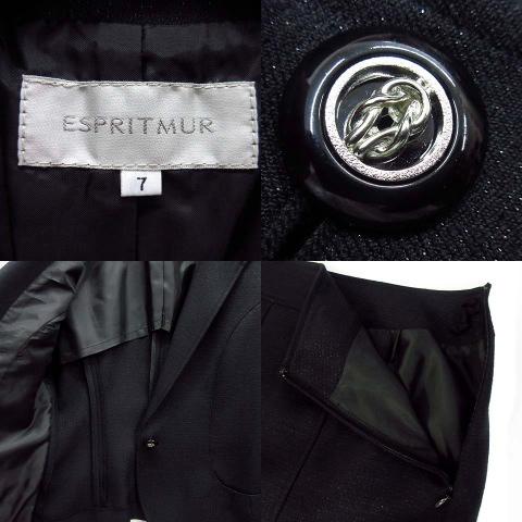 エスプリミュール ESPRITMUR スーツ 上下セットアップ ラメ オープンカラー ジャケット スカート 黒 ブラック 7 春夏 レディース