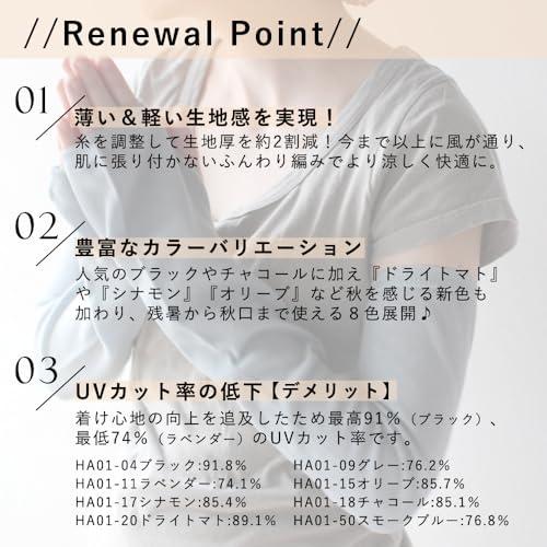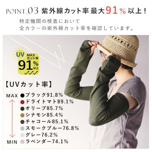 UVカット率シナモン:85%、チャコール:85%、ドライトマト:89%、スモークブルー:76%