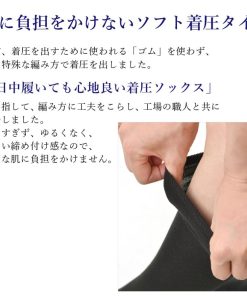 また、綿混率が高いので夏は涼しく、冬は暖か。ウエイトレスや看護師など立ち仕事の方や、一日中座ってデスクワークを行うオフィスワークの方、また足の冷え性やむくみでお悩みの方に、電車や飛行機など長時間の旅行や移動をされる方に最適な靴下となっております。