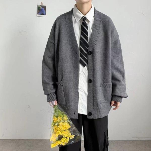 カーディガン メンズ ニットセーター オーバーサイズ vネック ニット アウター セーター 羽織 体型カバー 秋冬 前開き 軽アウター カジュアル