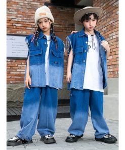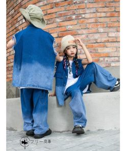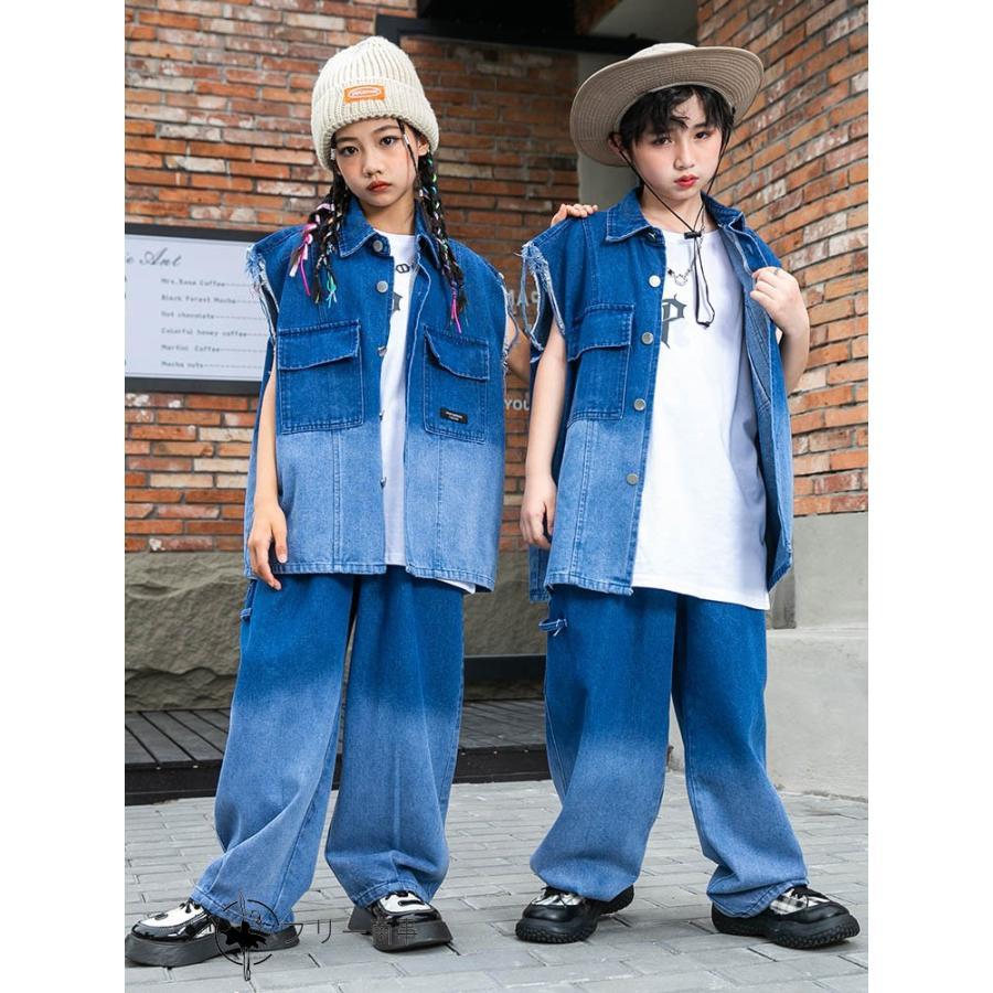 ダンス衣装 キッズ 単品orセットアップ ステージ衣装 jazz HIPHOP おしゃれ 練習服 ストリートウェア デニム柄ダンス衣装 男女兼用