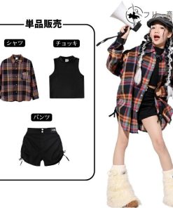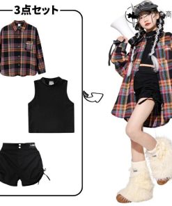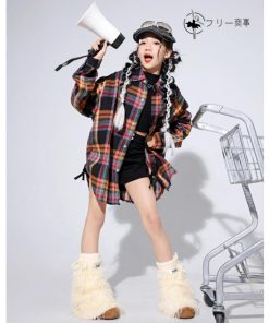 キッズダンス 衣装 レッグウォーマー ヒップホップ ストライプ y2k パンク風 格子柄 子供服 女の子 チアガール チェックシャツ 子供ダンス キッズダンス衣
