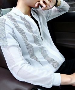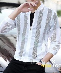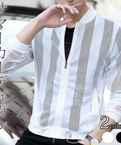 サマーカーディガン メンズ ストライプ 切り替え ライトアウター 夏 春 薄い 薄手 冷感 涼しい 日焼け対策 冷房対策 UV対策 ジャケット ブルゾン アウター 長袖 メッシュ編みカジュアル おしゃれ