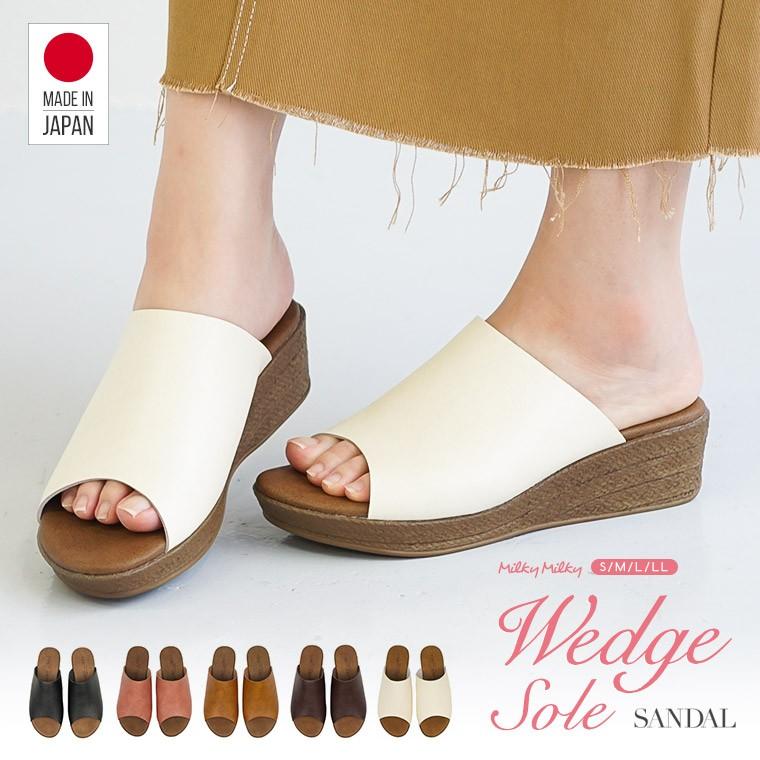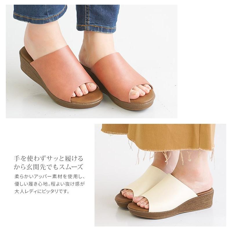 サンダル レディース 日本製 つっかけ 旅行 ウェッジソール 歩きやすい 痛くない 軽量 ミュール 黒 ブラック ブラウン ベージュ ピンク ホワイト 白 5350