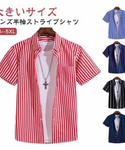 シャツ カジュアル ストライプ 半そで ボタンダウンシャツ チェック 半袖 メンズ ストライプシャツ 半袖シャ