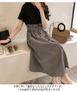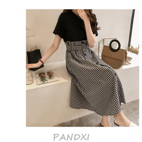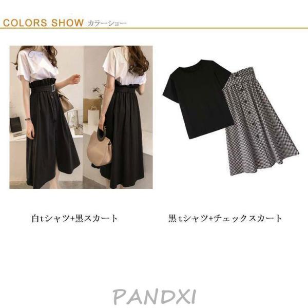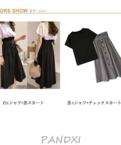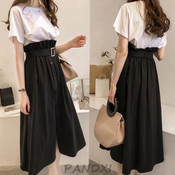 スカートスーツ 夏 Tシャツ+スカート オフィス フェミニン おしゃれ ブラックTシャツ 2点セット お出かけ カジュアル ス