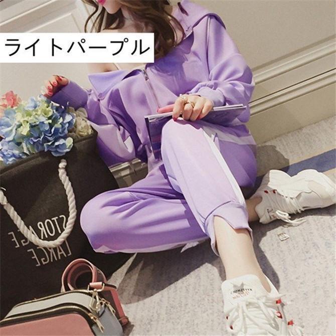 スポーツウエア 上下セット レディース ジャージ セットアップ 運動着 長袖 バイカラー トレーニングウエア フード付き 運動会
