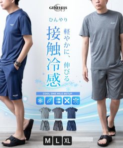 商品名:セットアップ メンズ 冷感 上下セット 部屋着 ルームウェア tシャツ 半袖 ストレッチ 吸水速乾