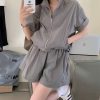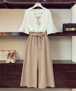 セットアップ レディース 春夏 半袖 可愛い パフスリーブ シフォン おしゃれ 前リボン ズボン ゆったり きれいめ カジュアル 新作 韓国風 2色