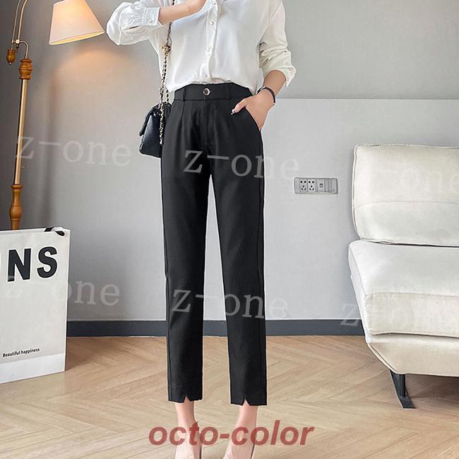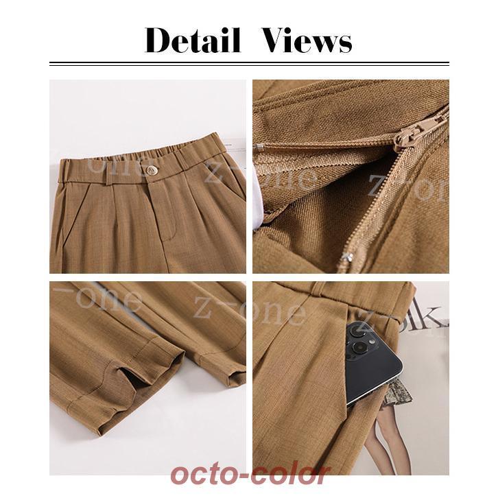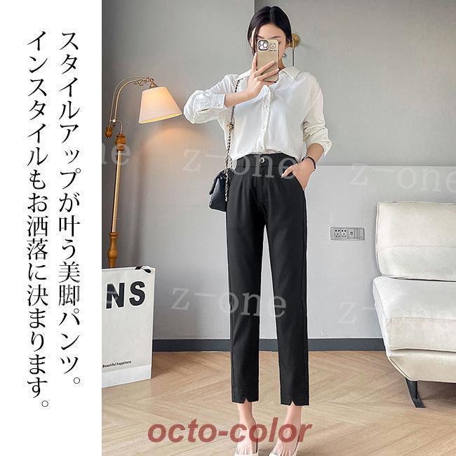 センタープレス入りのクロップド丈で美脚効果も抜群です。