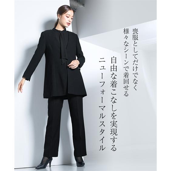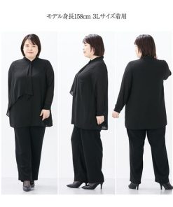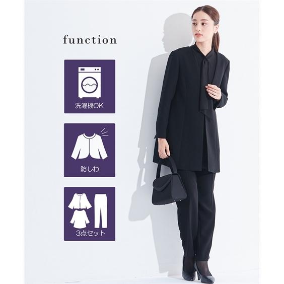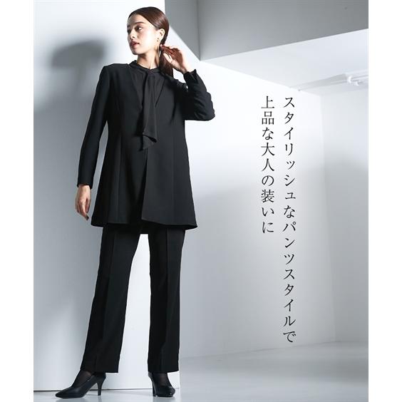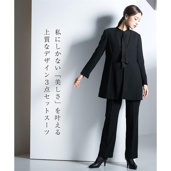 ニッセン 喪服 スーツ パンツ 大きいサイズ レディース 礼服 Callarus 日本製生地使用洗える防しわ デザイン 3点セット ロング丈 ジャケット +ドレープ ブラウス + 有