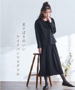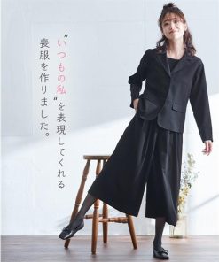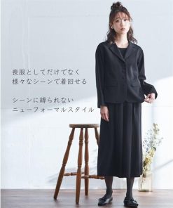 ニッセン 喪服 スーツ レディース 礼服 洗える 防しわ 胸当て付き ナチュラル テーラード ジャケット +ワイド パンツ S/M/L nissen