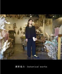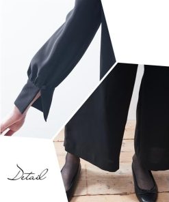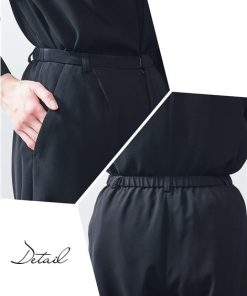 【素材】品質=[表地]ポリエステル100%(二重織) [裏地]無 ブラウス:袖口スリット パンツ:前ファスナー内ホック開 ウエスト後ゴム入 ポケット両脇 この商品は2点同サイズのみで販売します。