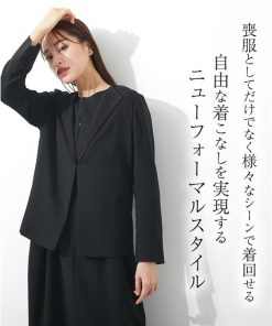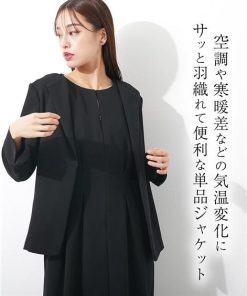 ニッセン 喪服 礼服 ジャケット 単品 レディース 日本製生地 洗える 防しわ フロントホック ノーカラー ラペル ブラックフォーマル M/L nissen