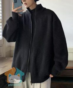 ニットカーディガン メンズ カーディガン ジャケット 長袖 秋冬 ゆったり 無地 ジップアップ 立ち襟 ニットセーター アウトドア 前開 カジュアル