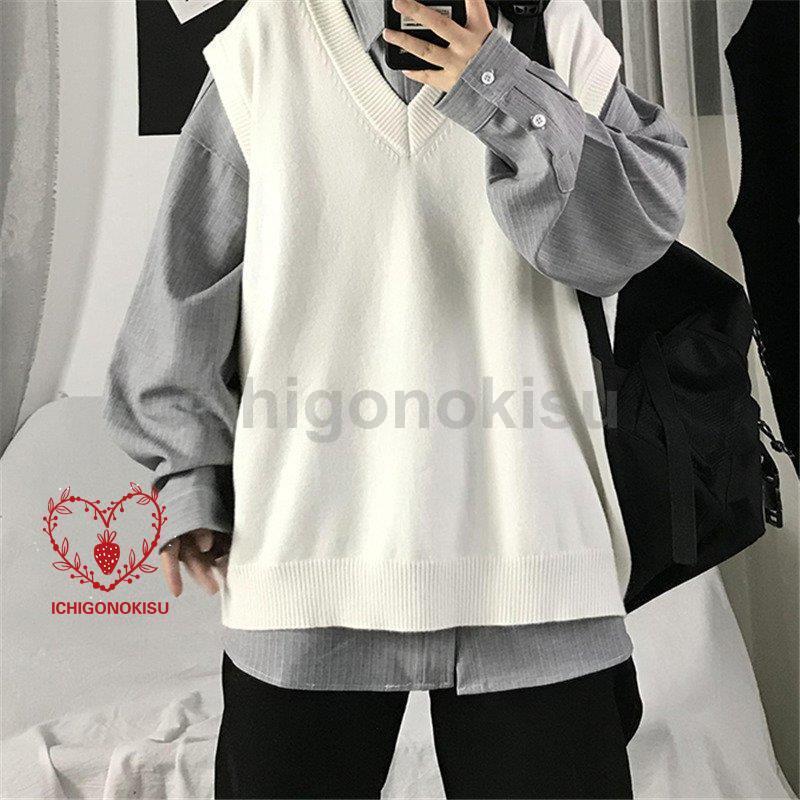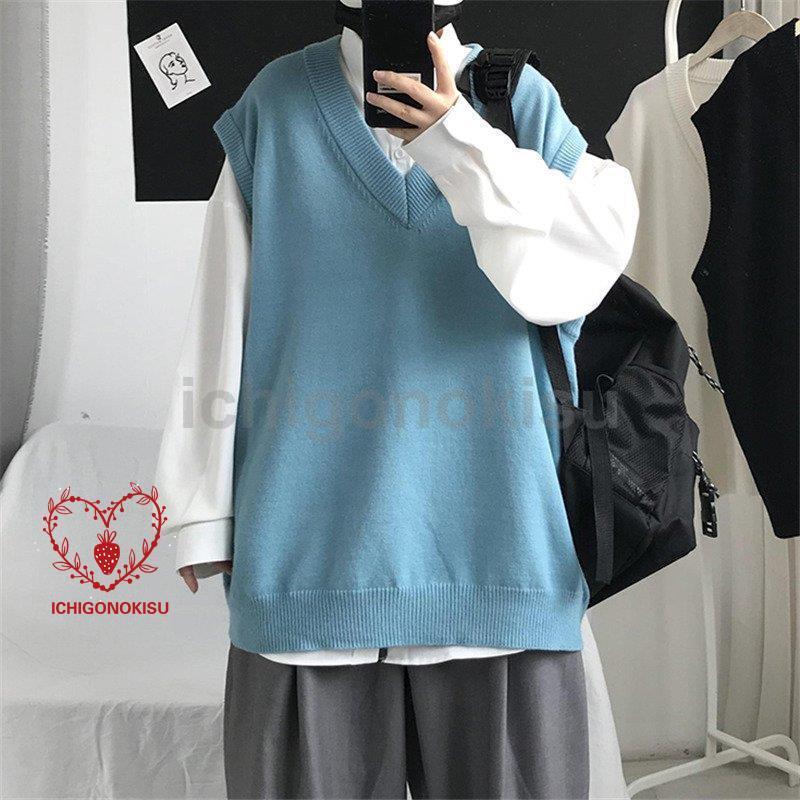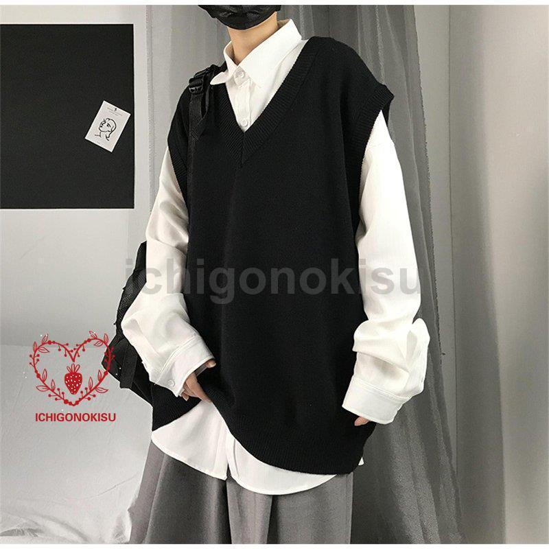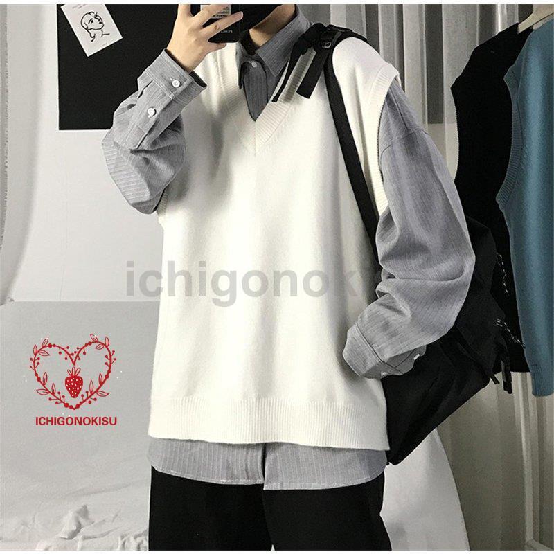 ニット メンズ 袖なし Vネック アウター ス スクール 男子 学生 ゆったり カジュアル オシャレ 通勤 通学 秋 冬
