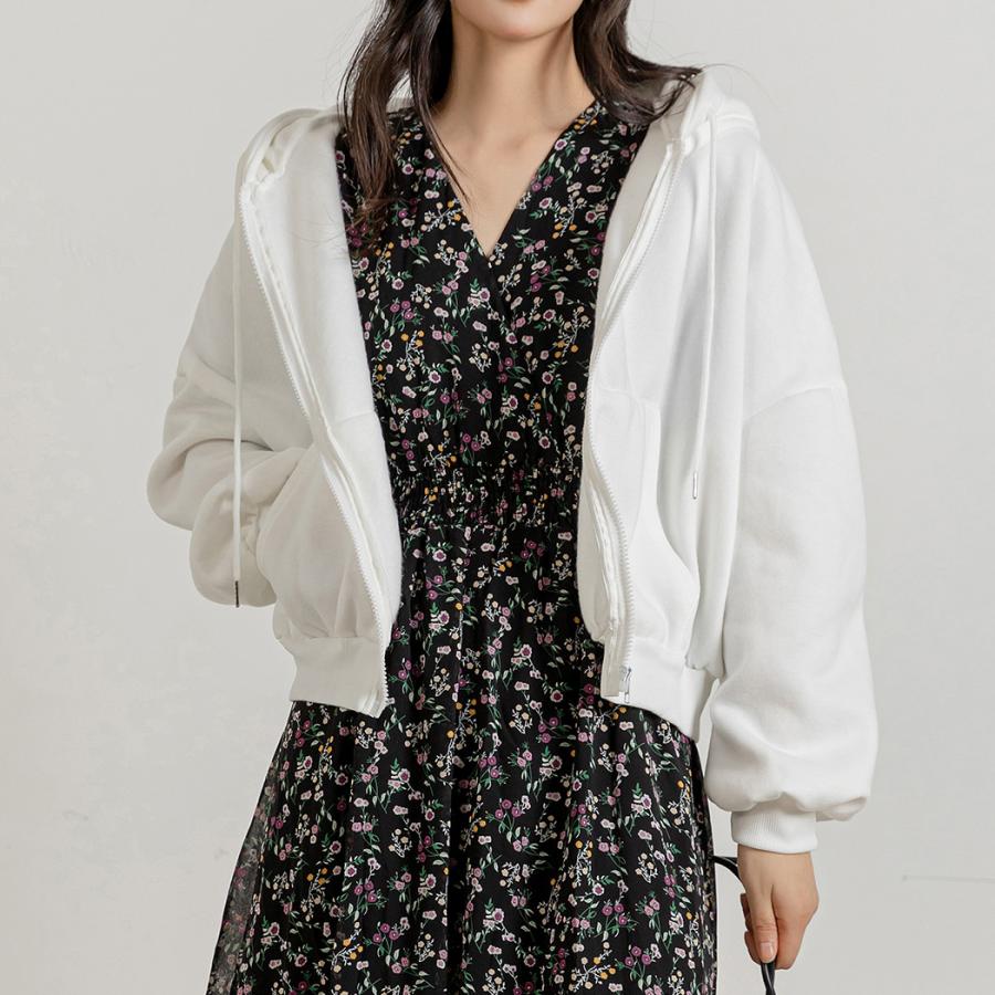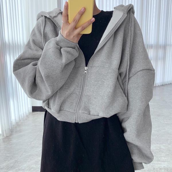 送料無料 翌日配達 あすつく パーカー フード付き レディース トップス アウター 裏起毛 フロントジップ フーディー スウェット オーバーサイズ クロップド丈 長袖 中厚手 無地 お洒落 こなれ感 暖かい ガーリー スポーティー デート 女子会 春 秋 冬