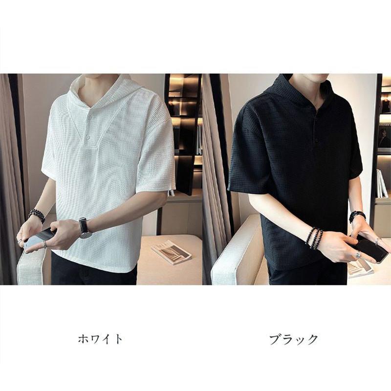 パーカー メンズ 夏用 薄手 ビッグシルエット ゆったり 半袖 Tシャツ 春夏 重ね着 レイヤード スポーツ プルオーバー 大きいサイズ フード付き