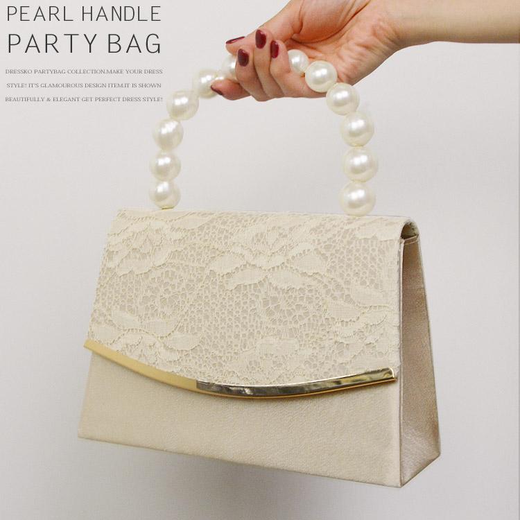 パーティーバッグ 結婚式 バッグ 大きめ 黒 パール フォーマルバッグ 普段使い ハンドバッグ レディース ハンドル レース シルバー ゴールド 50代 サブ