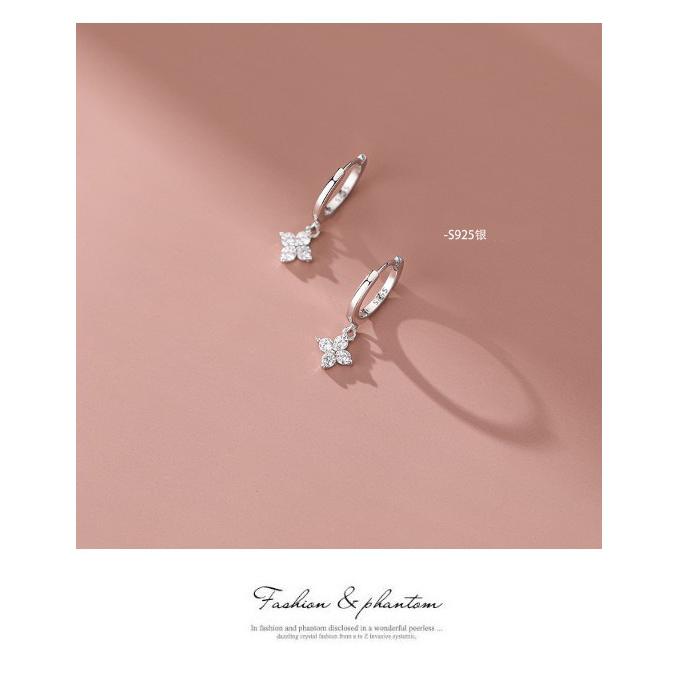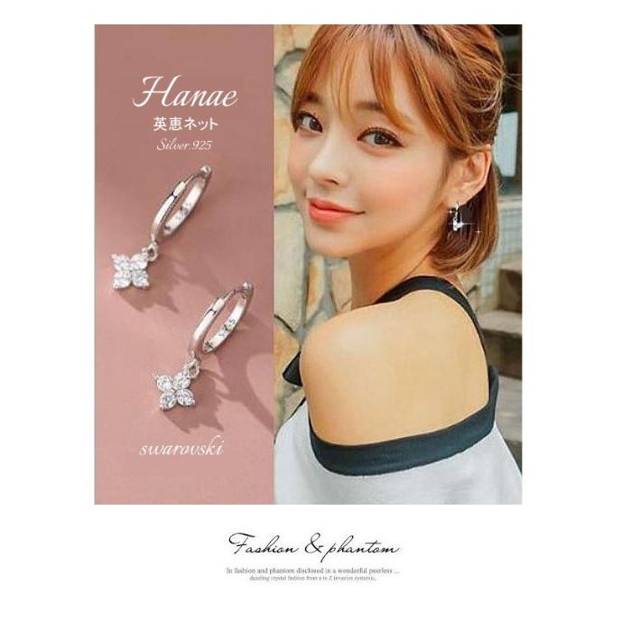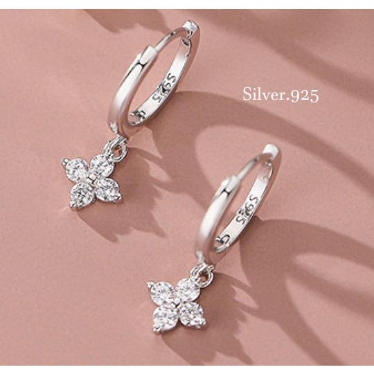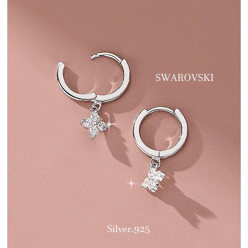 フープピアス レディース アレルギー対応 シルバー925 スワロフスキー つけっぱなし エンジェルピアス 花 フラワー 揺れる