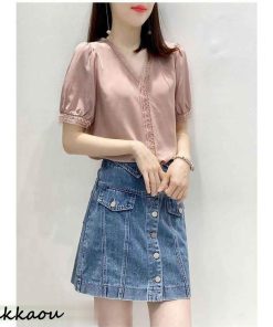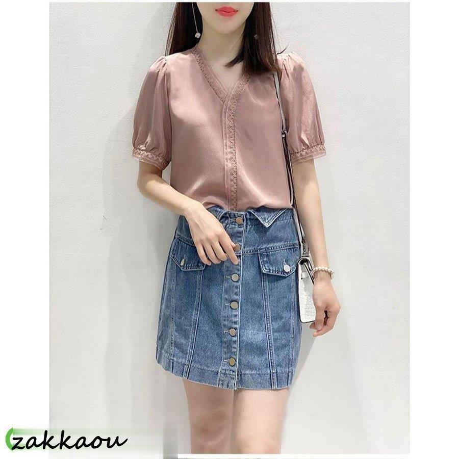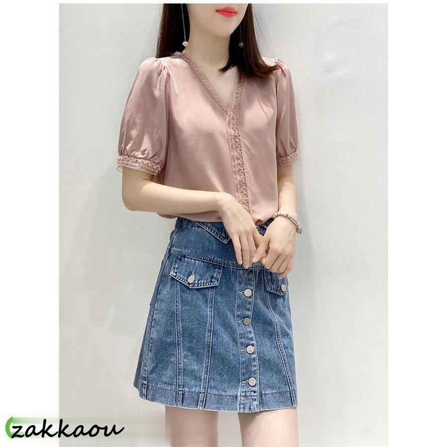 連携キーワード:ブラウス レディース 40代 春夏新作 オシャレブラウス 白シフォンシャツ 半袖トップス レースVネックパフスリーブブラウス 大人上品 通勤OL ゆったり シャツ30代 50代