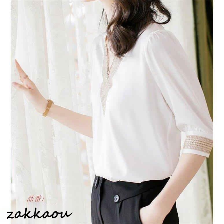 ブラウス 半袖 レディース シャツブラウス おしゃれ トップス ゆったり 大きいサイズ オフィス 通勤 きれいめ 体型カバー 夏 コーデ シルク風 30代 40代 50代