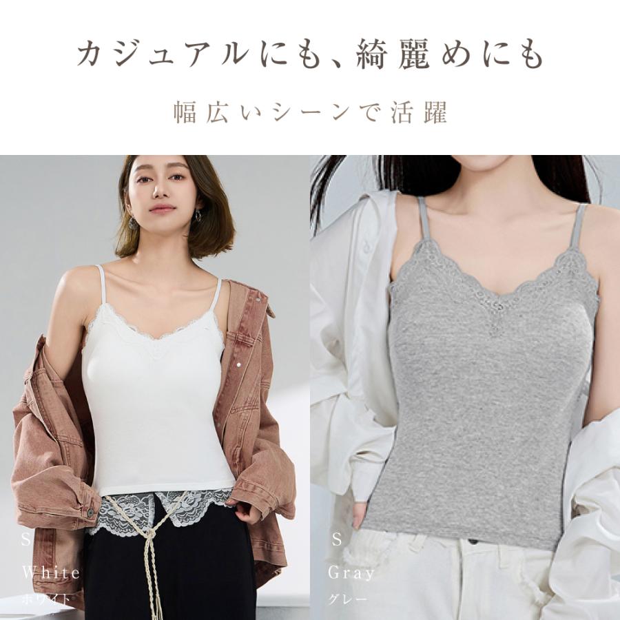 【ホールドカメ着け心地】おしゃれも、ラックも、ひとつで。気になる谷間のチラ見えを徹底ガードし、インナーとしてはもちろん、トップスとしても活躍できる一枚です。 【ソフトカップ付き】1枚でラクなのに、着回し力抜群!着け心地にもこだわった、ベーシックなカップ付きキャミ。ネックラインはレースxV型で気になる谷間をカバーしつつ、デコルテを綺麗に仕上げます。 【背中のラインがすっきり】背中が大きく開いたヘルシーなバックデザイン背中開きトップスやワンピのインナーとしても◎カジュアルにも、綺麗めにも幅広いシーンで活躍! 【さらっと快適に汗対策】汗をかいてもサラッと快適!伸縮のある紐を使用し、調節いらない 【サイズの目安】【M】バスト:75〜85cmアンダー:65〜75cmウエスト:63〜78cm【L】バスト:80〜90cmアンダー:68〜80cmウエスト:66〜81cm【XL】バスト:85〜95cmアンダー:68〜80cmウエスト:66〜81cm【2XL】バスト:90〜100cmアンダー:72〜85cmウエスト:73〜88cm【3XL】バスト:95〜110cmアンダー:72〜85cmウエスト:73〜88cm