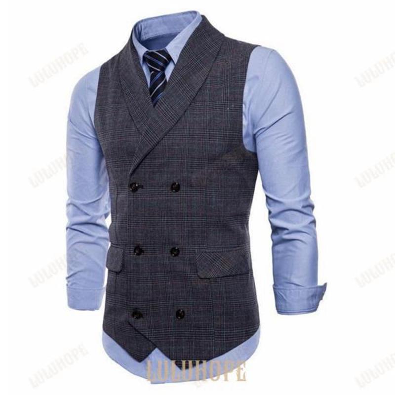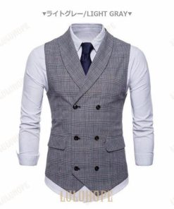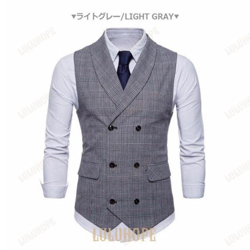 ベスト メンズ チェック ジレベスト スーツ生地 ベスト襟付き×ダブルベスト ダブルボタン ビジネス オッドベスト Vネック スリム