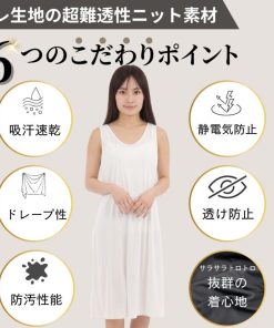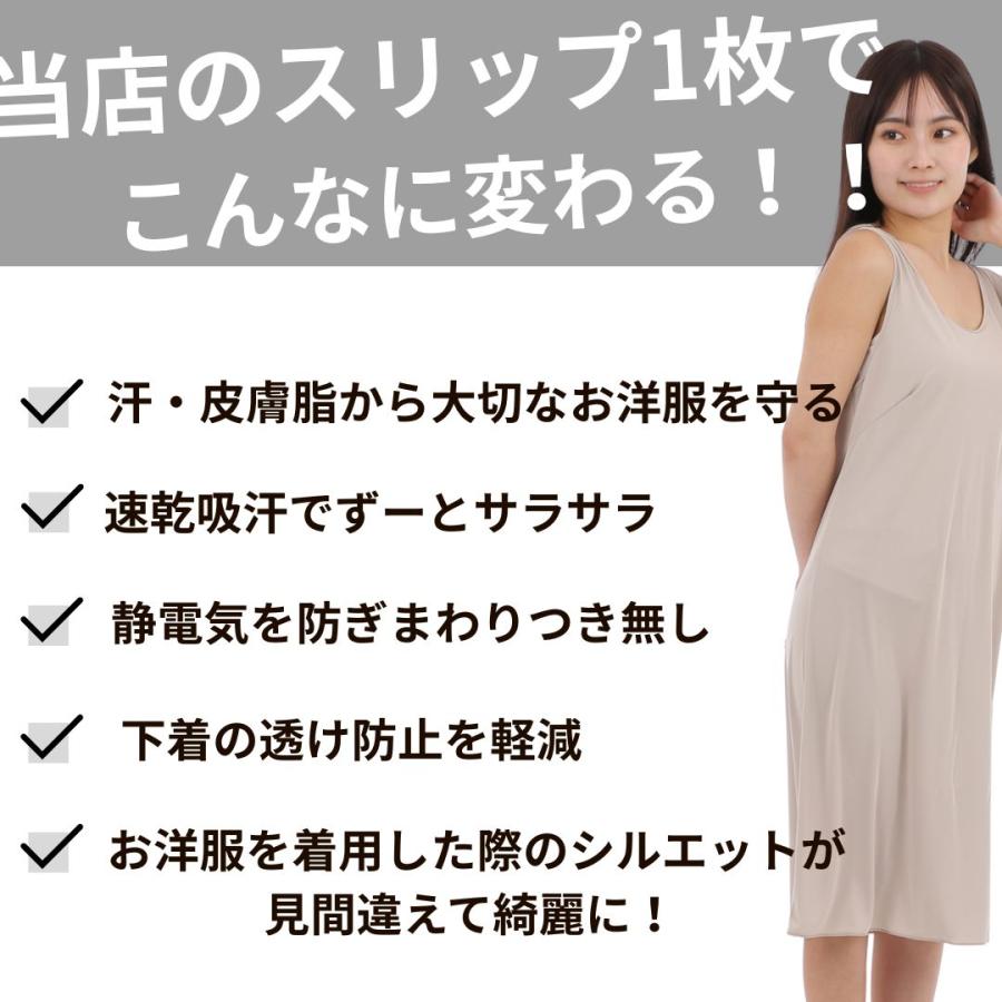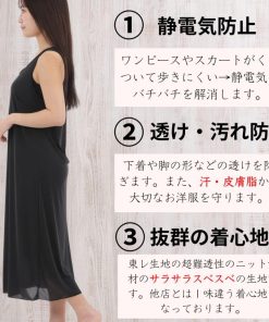 ペチコート ワンピース スリップ ロング レディース インナーワンピース 透け防止 東レ サラサラ素材 吸汗速乾 吸水 ブラ紐隠し 素玄 M L 丈90cm 100cm 110cm