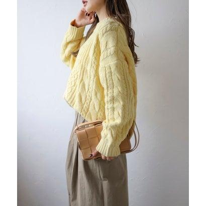 ボンジュールサガン BONJOUR SAGAN クルーネックミックスケーブルニット (YELLOW)