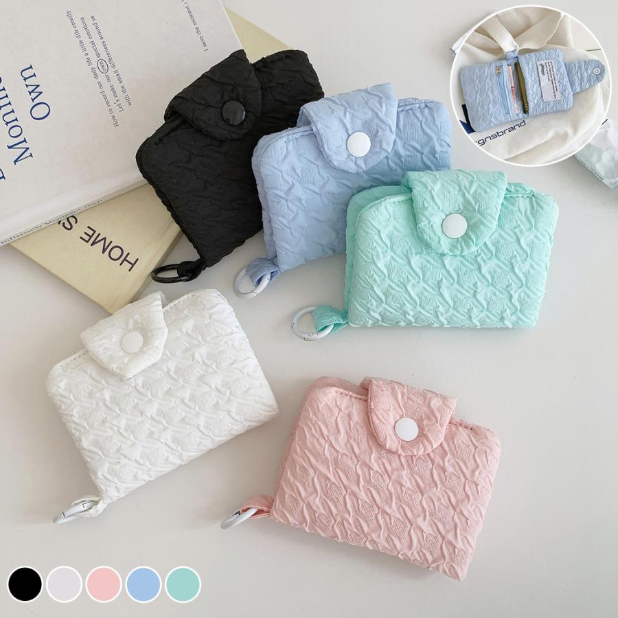 メール便送料無料 ミニ 財布 レディース コンパクト 二つ折り 使いやすい ミニウォレット カードケース ポーチ シンプル 折りたたみ カード入れ 小銭入れ お札入れ ファスナー ポケット スナップボタン リング付き ポイントカード ICカード 免許証 黒 白