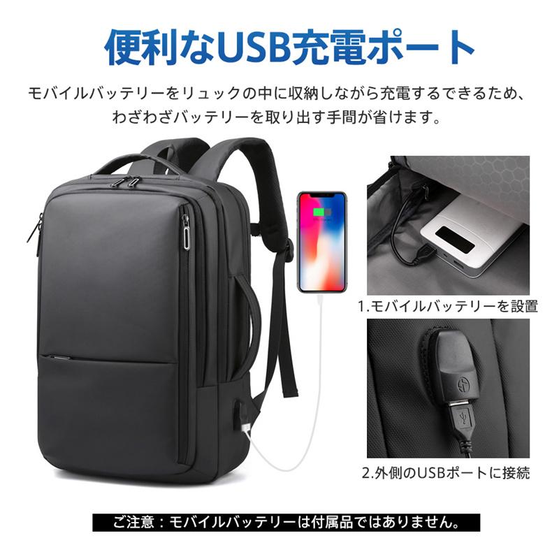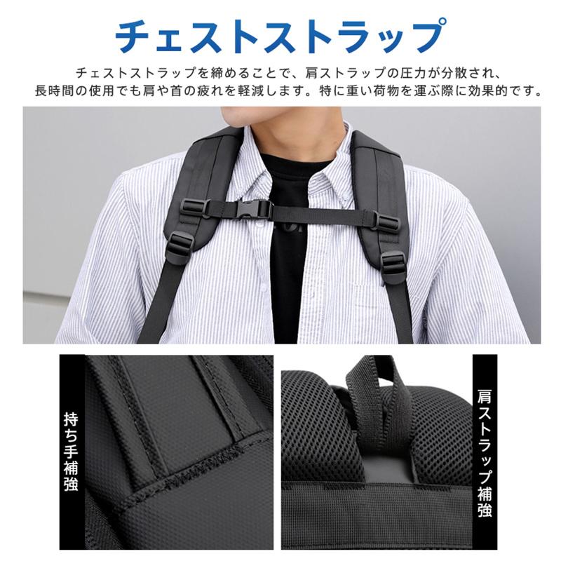 リュックサック メンズ 無地 ビジネスバッグ 充電ポート 大容量 拡張バッグ カバン 通勤 旅行 撥水加工 パソコンバッグ チェストストラップ 出張 爆買