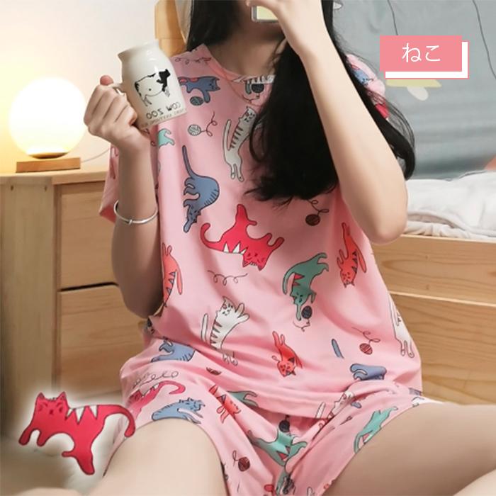 ルームウェア レディース 上下セット 在庫限り 夏 薄手 パジャマ 10代 20代 30代 可愛いパジャマ 猫